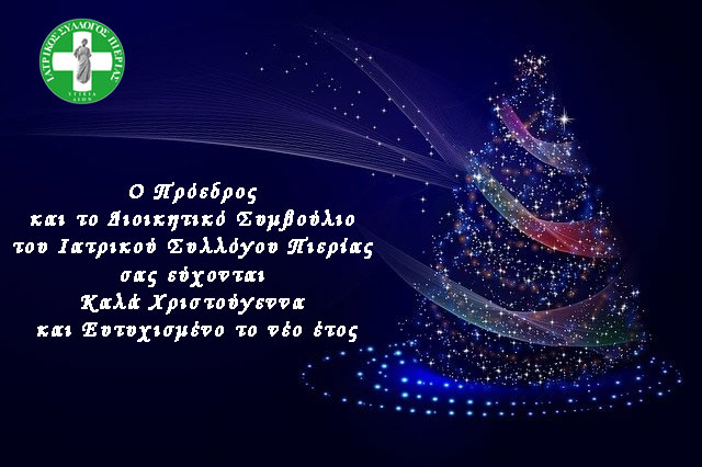 Ο Πρόεδρος και το Διοικητικό Συμβούλιο του Ιατρικού Συλλόγου Πιερίας σας εύχονται Καλά Χριστούγεννα και Ευτυχισμένο το Νέο Έτος.